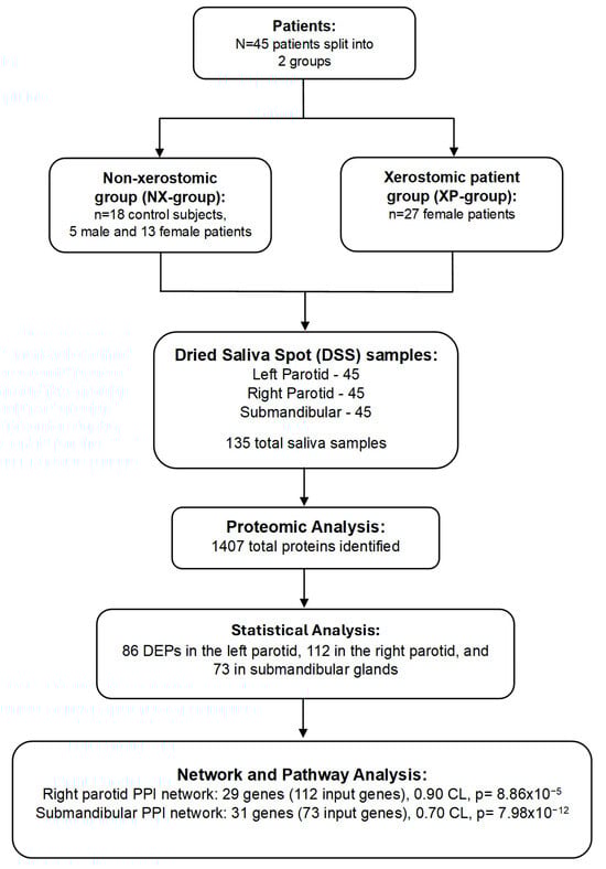 - Jasim, H.; Olausson, P.; Hedenberg-Magnusson, B.; Ernberg, M.; Ghafouri, B. The proteomic profile of whole and glandular saliva in healthy pain-free subjects. Sci. Rep. 2016, 6, 39073. [Google Scholar] [CrossRef] [PubMed]