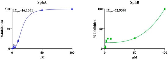 - Roscetto, E.; Masi, M.; Esposito, M.; Di Lecce, R.; Delicato, A.; Maddau, L.; Calabro, V.; Evidente, A.; Catania, M.R. Anti-biofilm activity of the fungal phytotoxin sphaeropsidin A against clinical isolates of antibiotic-resistant bacteria. Toxins 2020, 12, 444. [Google Scholar] [CrossRef] [PubMed]