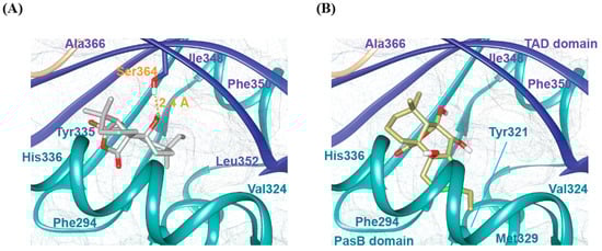 2.8. Molecular Docking Analysis of bAhR in Complexes with SphA and SphB