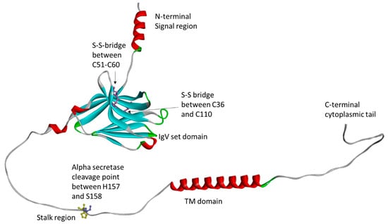 - Park, J.-S.; Ji, I.J.; Kim, D.H.; An, H.J.; Yoon, S.Y. The Alzheimer’s disease-associated R47H variant of TREM2 has an altered glycosylation pattern and protein stability. Front. Neurosci. 2017, 10, 618. [Google Scholar] [CrossRef]