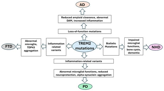 APA StyleYang, H., Kim, D., Yang, Y., Bagyinszky, E., & An, S. S. A. (2025). TREM2 in Neurodegenerative Disorders: Mutation Spectrum, Pathophysiology, and Therapeutic Targeting. International Journal of Molecular Sciences, 26(15), 7057. https://doi.org/10.3390/ijms26157057