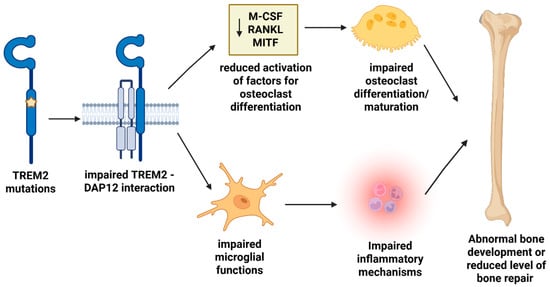 - Plotkin, L.I. Triggering Receptor Expressed on Myeloid Cells 2 (TREM2) Mutations: A Potential Common Cause of Alzheimer’s Disease and Musculoskeletal Disorders. FASEB J. 2019, 33, 587–598. [Google Scholar] [CrossRef]