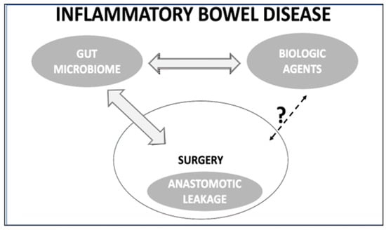 The concept of interplay among the gut microbiota, biologic agents, and the postoperative anastomotic leakage in patients with inflammatory bowel disease.