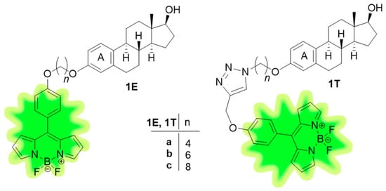 Structures of estrogenic BODIPY-labeled E2 conjugates (1E, 1T).