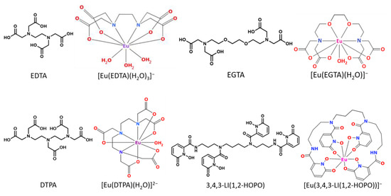 Generic structures of the potential decorporation agents and their Eu(III) complexes considered in this study.