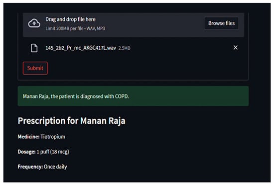 An end-to-end diagnosis–prescription model is promising but constrained by the absence of datasets linking respiratory sounds with validated medication records. To address this, we implemented a modular pipeline with separate, task-specific models for diagnosis and prescription, ensuring robustness, interpretability, and ethical compliance. Future multimodal datasets can enable integrated systems for enhanced diagnostic–therapeutic synergy. To simulate clinical complexity, our data generation pipeline applies rule-based contraindication filters (i.e., excluding β-blockers for asthma, adjusting renal dose antibiotics, a 25-pair lookup for high-risk drug interactions (with anticoagulants)). While effective, rare comorbidities and uncommon interactions remain under-represented.