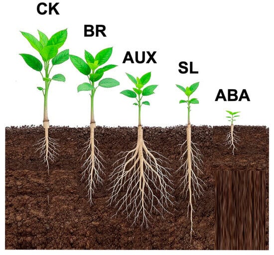 5]. This plasticity is largely governed by plant hormones, which fine-tune tissue development, resource allocation, and stress responses. As a result, hormones are essential for ensuring that structures such as shoots and roots form appropriately under fluctuating conditions. The significance of this role is evident in hormone-insensitive mutants: those lacking responsiveness to major growth regulators—auxins (AUXs), cytokinins (CKs), gibberellic acids (GAs), strigolactones (SLs), and brassinosteroids (BRs)—can still form basic organs but often display severe dwarfism and poor environmental responsiveness [
