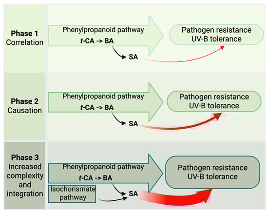 - Singh, P.; Singh, A.; Choudhary, K.K. Revisiting the role of phenylpropanoids in plant defense against UV-B stress. Plant Stress 2023, 7, 100143. [Google Scholar] [CrossRef]