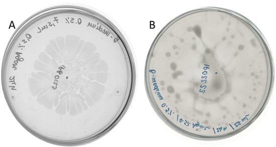 - Julkowska, D.; Obuchowski, M.; Holland, I.B.; Séror, S.J. Comparative analysis of the development of swarming communities of Bacillus subtilis 168 and a natural wild type: Critical effects of surfactin and the composition of the medium. J. Bacteriol. 2005, 187, 65–76. [Google Scholar] [CrossRef] [PubMed]