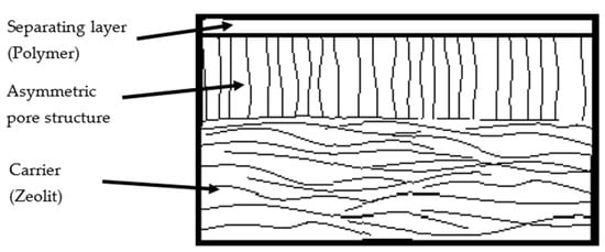 Cross-sectional schematic of a typical composite membrane, consisting of a thin selective separating layer and a porous support structure [