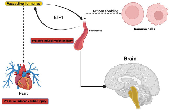 Neurovascular coupling allows for CBF to match neuronal activity, but this relationship can be disrupted with ICH. Disruptions in astrocyte-pericyte signaling, reduced nitric oxide (NO) bioavailability, and vascular stiffness all contribute to endothelial dysfunction [128,129]. Imaging studies have established that astrocyte–pericyte communication is key to maintaining vascular stability, and therapies targeting pericytes are being developed [130].