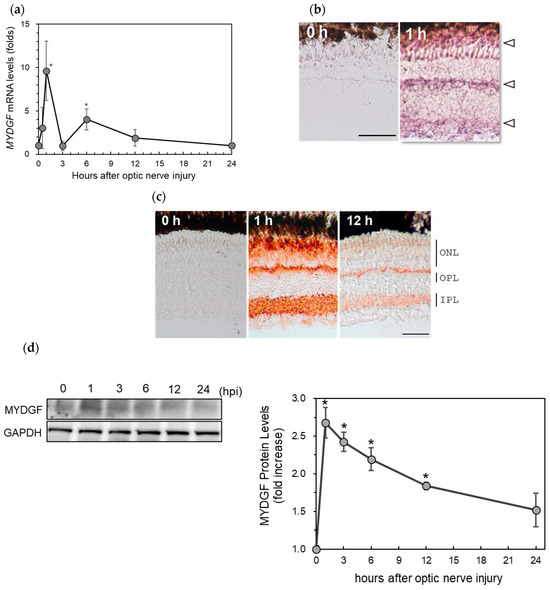 Sugitani, K.; Omori, Y.; Mokuya, T.; Hosoi, S.; Kobayashi, H.; Miyata, K.; Araiso, Y.; Koriyama, Y. The Rapid Activation of MYDGF Is Critical for Cell Survival in the Acute Phase of Retinal Regeneration in Fish. Int. J. Mol. Sci. 2025, 26, 7251. https://doi.org/10.3390/ijms26157251