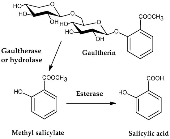 - Grisebach, H.; Vollmer, K.O. Untersuchungen zur Biosynthese des Salicylsäuremethylesters in Gaultheria procumbens L. Z. Naturforsch. B 1963, 18, 753–756. [Google Scholar] [CrossRef]