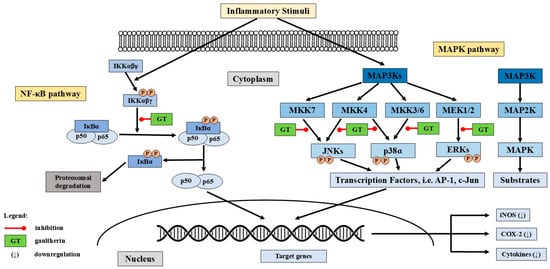 - Schwenger, P.; Alpert, D.; Skolnik, E.Y.; Vilček, J. Activation of p38 mitogen-activated protein kinase by sodium salicylate leads to inhibition of tumor necrosis factor-induced IκBα phosphorylation and degradation. Mol. Cell. Biol. 1998, 18, 78–84. [Google Scholar] [CrossRef]