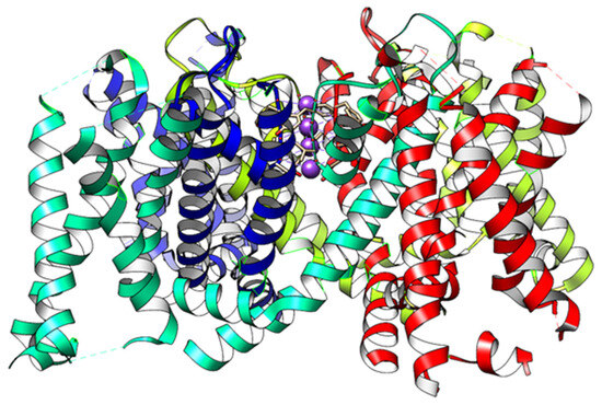 - Zhang, X.; Ren, W.; DeCaen, P.; Yan, C.; Tao, X.; Tang, L.; Wang, J.; Hasegawa, K.; Kumasaka, T.; He, J.; et al. Crystal structure of an orthologue of the NaChBac voltage-gated sodium channel. Nature 2012, 486, 130–134. [Google Scholar] [CrossRef] [PubMed]