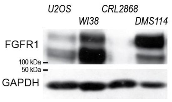 FGFR1 expression in the investigated cell lines. Logarithmically growing cells were lysed and the extracts obtained were analyzed by immunoblotting using the indicated antibodies.