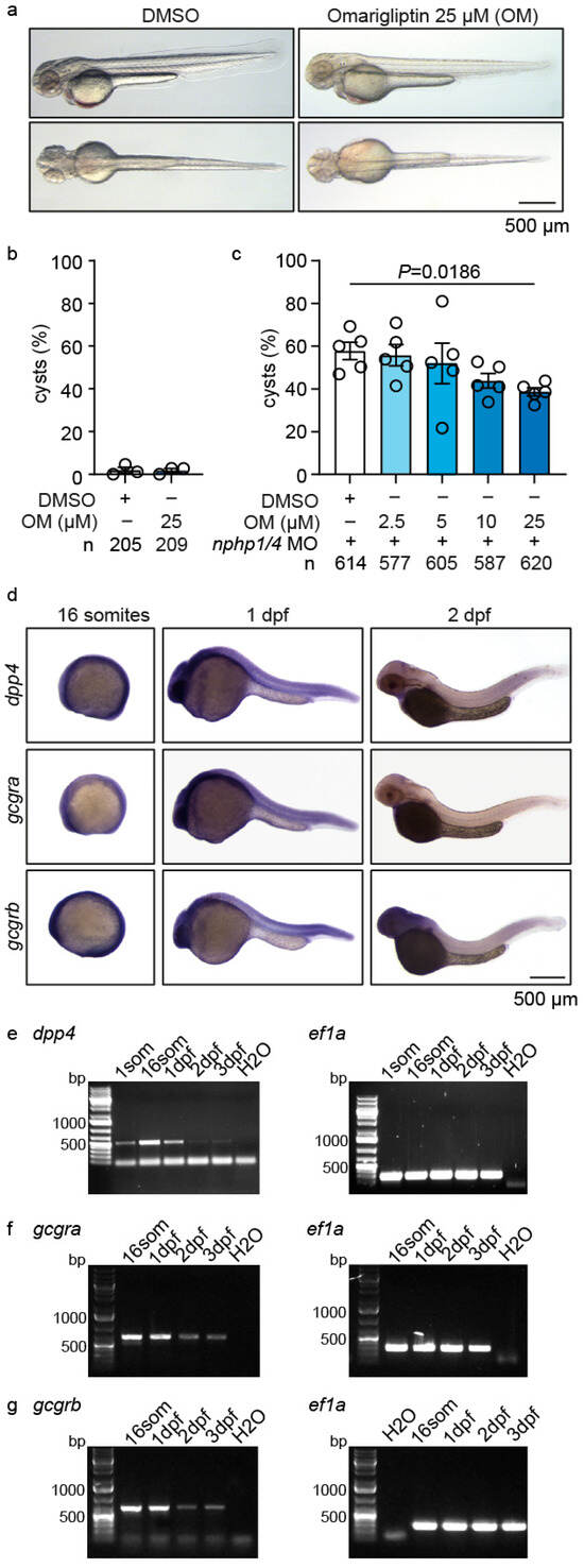 2.2. Omarigliptin Modulates GLP-1 Signaling and Reduces Cyst Formation in a Zebrafish Nephronophthisis Model