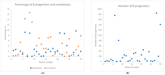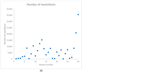 - Majcherek, M.; Kiernicka-Parulska, J.; Mierzwa, A.; Barańska, M.; Matuszak, M.; Lewandowski, K.; Komarnicki, M.; Czyż, A. The diagnostic and prognostic significance of flow cytometric bone marrow assessment in myelodysplastic syndromes according to the European LeukemiaNet recommendations in single-centre real-life experience. Scand. J. Immunol. 2021, 94, e13028. [Google Scholar] [CrossRef]