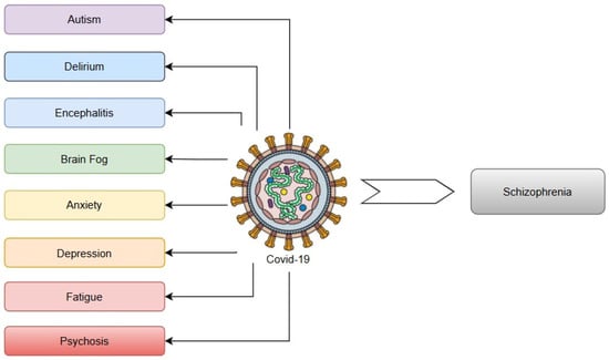 - Baranova, A.; Cao, H.; Zhang, F. Severe COVID-19 Increases the Risk of Schizophrenia. Psychiatry Res. 2022, 317, 114809. [Google Scholar] [CrossRef]