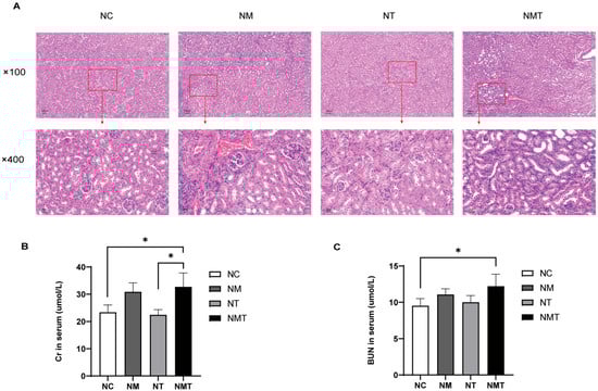 2.2. Effect of TMAO on Renal Histology and Function in Mice