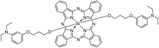 Evaluated silicon(IV) phthalocyanine bearing axial 3-(3-(diethylamino)phenoxy)propanoxy substituents (SiPc) revealed two absorption bands in the 300–400 nm range—the Soret band and in the 600–700 nm range—the Q band (Figure 2).
