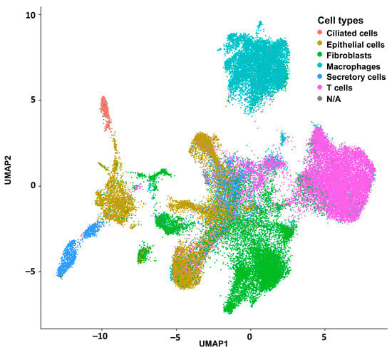 - Stuart, T.; Butler, A.; Hoffman, P.; Hafemeister, C.; Papalexi, E.; Mauck, W.M.; Hao, Y.; Stoeckius, M.; Smibert, P.; Satija, R. Comprehensive Integration of Single-Cell Data. Cell 2019, 177, 1888–1902.e21. [Google Scholar] [CrossRef] [PubMed]