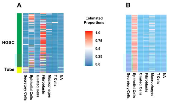 - Hippen, A.A.; Omran, D.K.; Weber, L.M.; Jung, E.; Drapkin, R.; Doherty, J.A.; Hicks, S.C.; Greene, C.S. Performance of Computational Algorithms to Deconvolve Heterogeneous Bulk Ovarian Tumor Tissue Depends on Experimental Factors. Genome Biol. 2023, 24, 239. [Google Scholar] [CrossRef]