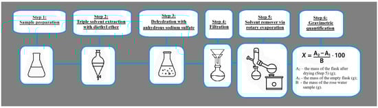 Schematic presentation of essential oil quantification in rose water according to Standard ISO 9842:2024.