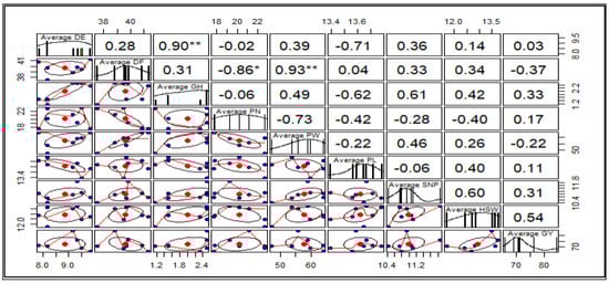 3.4. Pearson Correlation Among the Agro-Morphological Traits