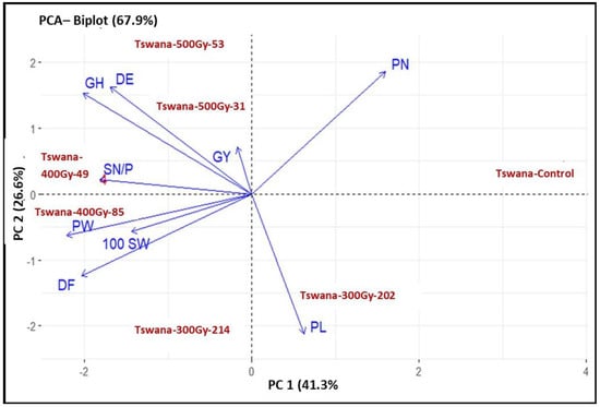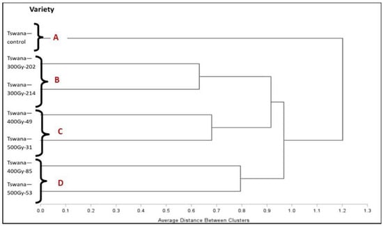 - Ramolekwa, K.; Pholo-Tait, M.; Ngwako, S.; Malambane, G.; Lekgari, L. Agronomic and Physicochemical Characterization of Gamma Irradiation on M4 Cowpea [Vigna unguiculata (L.) Walp] Mutants. Univers. J. Agric. Res. 2024, 12, 629–641. [Google Scholar] [CrossRef]