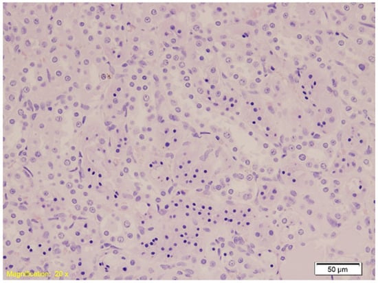 Histological findings linked to hypothermic fatalities have been noted in the forensic pathology literature. These include reductions in liver glycogen levels, focal necrosis in pancreatic tissue and surrounding fat, pancreatitis, vacuolation of adenocytes, fatty degeneration in the renal tubular epithelium (Armanni–Ebstein phenomenon), vacuolization in cells of the anterior pituitary, liver and kidneys, and hypoxic changes in the heart, including fatty degeneration of cardiac myocytes and hepatocytes [18,19,20,21,22]. Some researchers have found a significant correlation between Wischnewski spots and basal vacuolization of renal tubular cells, suggesting that the Armanni–Ebstein phenomenon may be the most characteristic histological marker of fatal hypothermia [11,13,18,19,23,24,25,26,27,28,29,30,31,32].