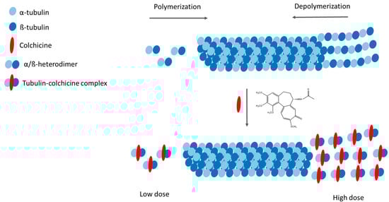- Alkadi, H.; Khubeiz, M.J.; Jbeily, R. Colchicine: A review on chemical structure and clinical usage. Infect. Disord.-Drug Targets Disord. 2018, 18, 105–121. [Google Scholar] [CrossRef]