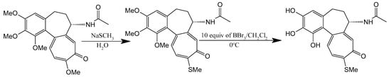 Synthesis of thiocolchicine and 1,2,3-demethylthiocolchicine (adapted from []).