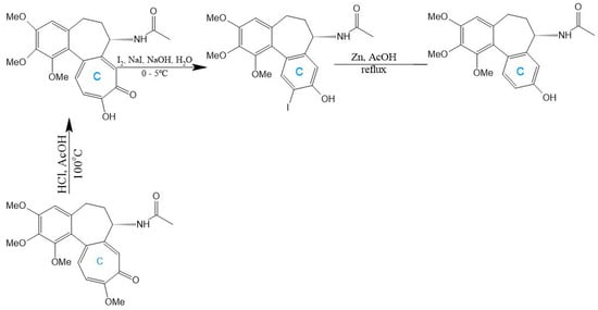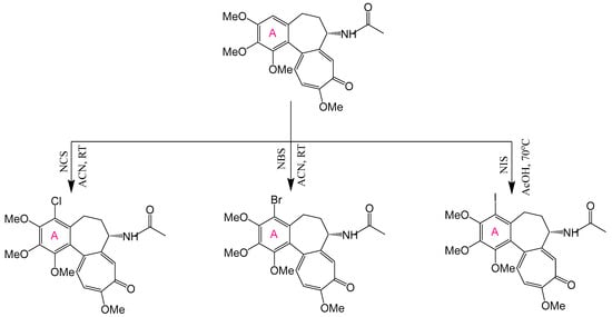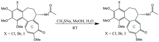Synthesis of 4-chloro-, 4-bromo-, and 4-iodocolchicine (adapted from []).