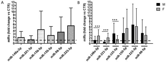 4.2. RNA Extraction, cDNA Synthesis, and Quantitative Analysis by qRT-PCR of the Selected MicroRNAs