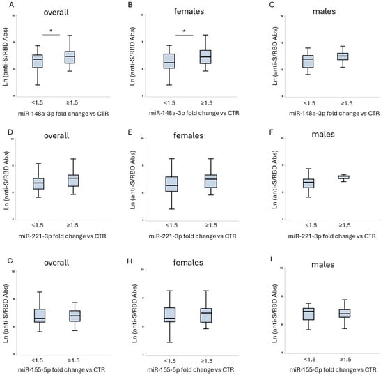 Anticoli, S.; Dorrucci, M.; Iessi, E.; Zaffina, S.; Carsetti, R.; Vonesch, N.; Tomao, P.; Ruggieri, A. Profile of Selected MicroRNAs as Markers of Sex-Specific Anti-S/RBD Response to COVID-19 mRNA Vaccine in Health Care Workers. Int. J. Mol. Sci. 2025, 26, 7636. https://doi.org/10.3390/ijms26157636