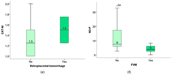 Figure 12e), and the level of the fetus’s NO positively correlated with the existence of FVM changes (