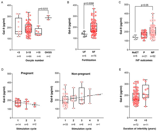 2.6. Follicular and Serum Galectin-9 Levels in IVF Patients and Controls