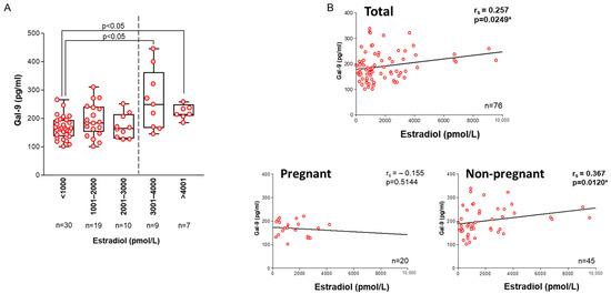 - Brubel, R.; Bokor, A.; Pohl, A.; Schilli, G.K.; Szereday, L.; Bacher-Szamuel, R.; Rigo, J.; Polgar, B. Serum Galectin-9 as a Noninvasive Biomarker for the Detection of Endometriosis and Pelvic Pain or Infertility-Related Gynecologic Disorders. Fertil. Steril. 2017, 108, 1016–1025.e2. [Google Scholar] [CrossRef]