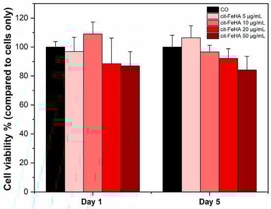 2.2. Cit-FeHA Nanoparticle In Vitro Cyocompatibility Assay
