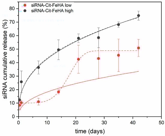 2.3. Characterization of siRNA-Loaded Cit-FeHA NPs and Release Properties