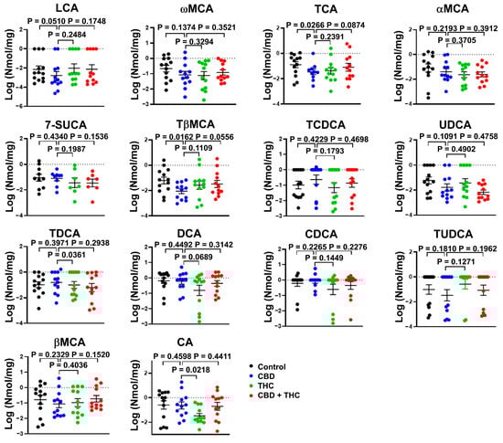 2.4. Extended Survival Linked to Treatment with CBD Is Associated with a Reduction in the Levels of Bile Acids
