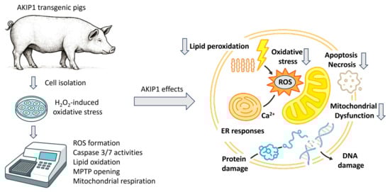 Bak, A.; Hinrichs, A.; Schwaiger, A.; Fromme, T.; Fischer, A.; Kurome, M.; Zakhartchenko, V.; Kessler, B.; Klingenspor, M.; Wolf, E.; et al. Assessing the Function of Porcine A Kinase-Interacting Protein 1 (AKIP1) In Vitro—A Central Regulator of Oxidative Stress and Mitochondrial Functions. Int. J. Mol. Sci. 2025, 26, 7759. https://doi.org/10.3390/ijms26167759