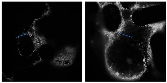 The studies were conducted using the Balb/3T3 mouse fibroblast line (clone A31, American Type Culture Collection, Manassas, VA, USA), which is one of the models used to assess the in vitro cytotoxicity of biomaterials (PN-EN ISO 10993-5:2009) []. The Balb/3T3 cells were cultured in Dulbecco’s Modified Eagle’s Medium (DMEM) containing 4.5 g/L of glucose and 25 mM of HEPES (Capricorn, Ebsdorfergrund, Germany), supplemented with 1% L-glutamine, streptomycin, and penicillin (all from Sigma-Aldrich®, St. Louis, MO, USA), and 10% calf serum (CS, Sigma-Aldrich®), under standard conditions. The incubator was set to 37 °C with a humidity atmosphere and 5% CO2 (HERAcell CO2 150i incubator, Thermo Scientific, Waltham, MA, USA).