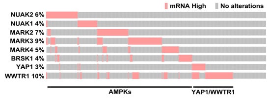 - Yuan, W.C.; Pepe-Mooney, B.; Galli, G.G.; Dill, M.T.; Huang, H.T.; Hao, M.; Wang, Y.; Liang, H.; Calogero, R.A.; Camargo, F.D. NUAK2 is a critical YAP target in liver cancer. Nat. Commun. 2018, 9, 4834. [Google Scholar] [CrossRef]