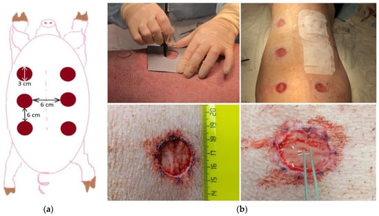 - Kuo, T.Y.; Huang, C.C.; Shieh, S.J.; Wang, Y.B.; Lin, M.J.; Wu, M.C.; Huang, L.L.H. Skin Wound Healing Assessment via an Optimized Wound Array Model in Miniature Pigs. Sci. Rep. 2022, 12, 445. [Google Scholar] [CrossRef]