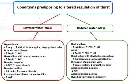 Conditions predisposing to inappropriate regulation of thirst are summarized in Figure 4.