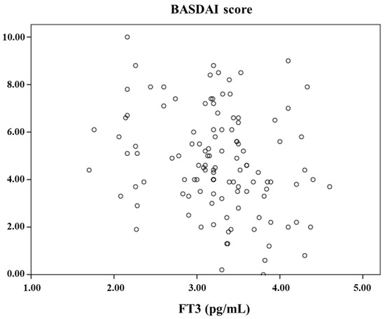 Scatter plot representing the relationship between FT3 and BASDAI score.