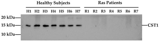 | Healthy Subjects (H) | Level of CST1 Expression | RAS Patients (R) | Level of CST1 Expression |