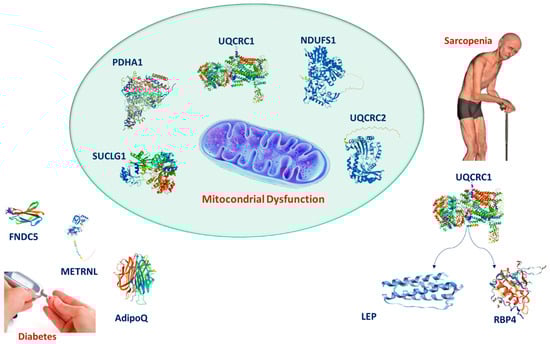 Instead, our study emphasizes the centrality of mitochondrial dysfunction and highlights the differential correlation of mitochondrial hub genes with classical and novel adipokines, such as FNDC5 and meteorin-like (METRNL), providing new insights into the endocrine–metabolic crosstalk underlying both diabetes and sarcopenia.